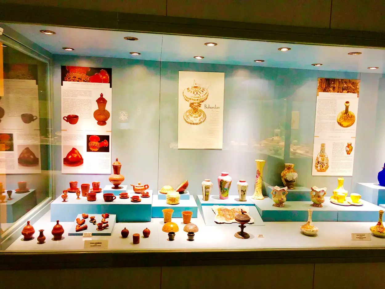Burada görebileceğini eşyalar cam vitrinler içerisindedir. Çiniler, seramikler, kaplar ve gülabdanlar gibi ilgi çekici eserler vardır. İznik çinilerinin tarihi 11. yüzyıldan 20. yüzyıla kadar uzanıyor. Salonda yer alan bir aşurelik, Osmanlı döneminin son zamanlarına aittir. Üzerindeki çiçek ve yaprak süslemeleri diğer eserler arasında dikkat çekmesini sağlıyor. Üzerlerinde hayvan motifleri bulunan çanaklar, tabaklar, vazolar ve taslar sanatın güzelliğini gözler önüne seriyor. 19. yüzyıl gülabdanları ve Selçuklu dönemine ait kap örneğini mutlaka incelemelisiniz. Salondaki cam eşyaların çoğu Beykoz imalatıdır.