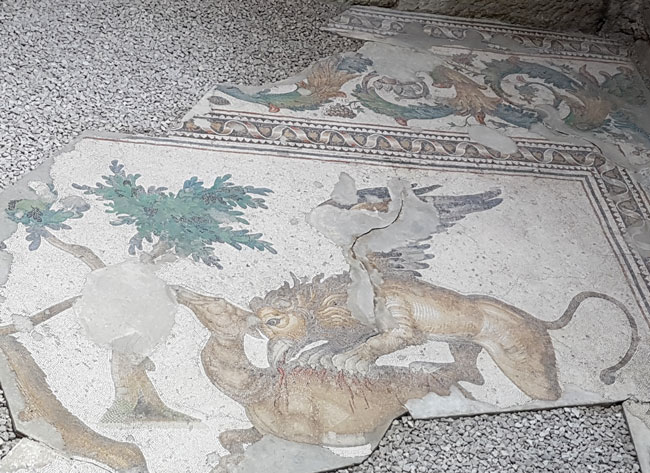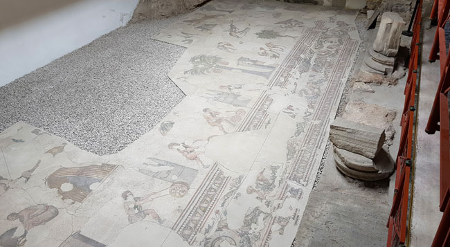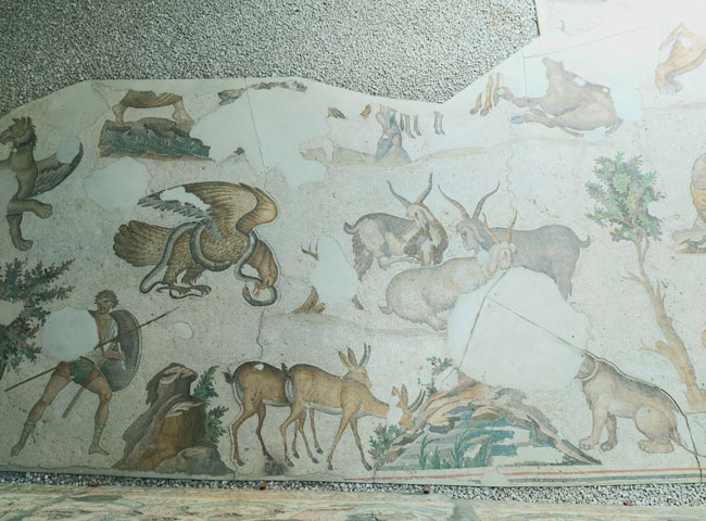Peristilin mozaiklerle kaplanması ise Doğu Roma İmparatoru 1. Justinianus dönemine uzanıyor. Bu da tarihinin oldukça köklü olduğunu bizlere gösteriyor. Mozaiklerin konusu dinsel anlatımlardan ziyade mitoloji, doğa ve günlük yaşamı içeriyor. Eserlere bakıldığında dönemin sanatçılarının yeteneklerini de görmek mümkün.
