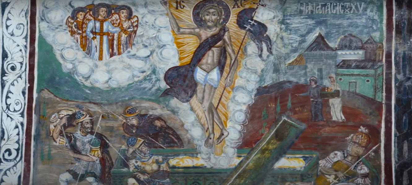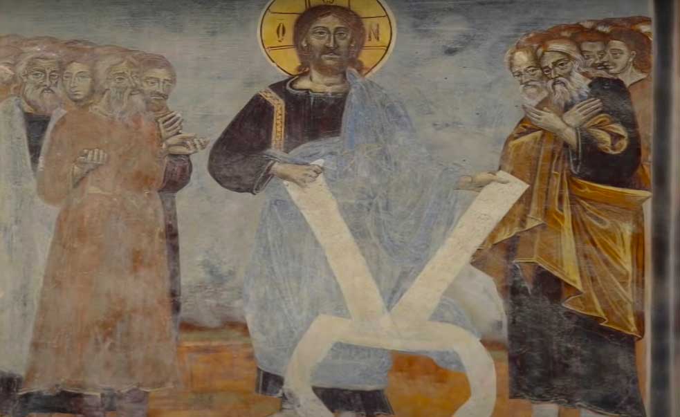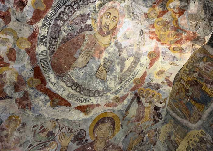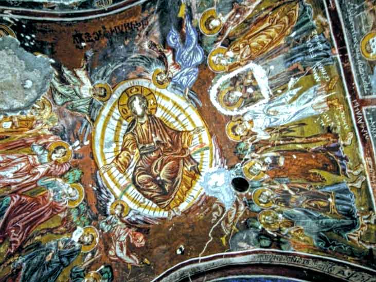 - İsa bu freskte etrafına ışık saçarak ve elindeki mızrakla göğe yükselirken melekler de buna tanık oluyor. Bu göğe yükseliş Hz. İsa’nın çarmıha gerildikten sonra yeniden dirilmesini anlatıyor. Bu fresk 12. Yüzyıldan kalma bir eserken 16. Yüzyıla yeni ögelerin eklenmesiyle zenginleştirilmiştir.