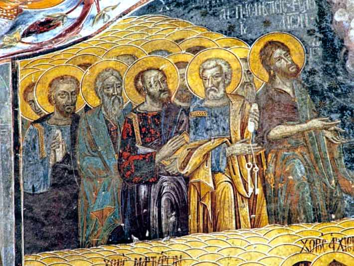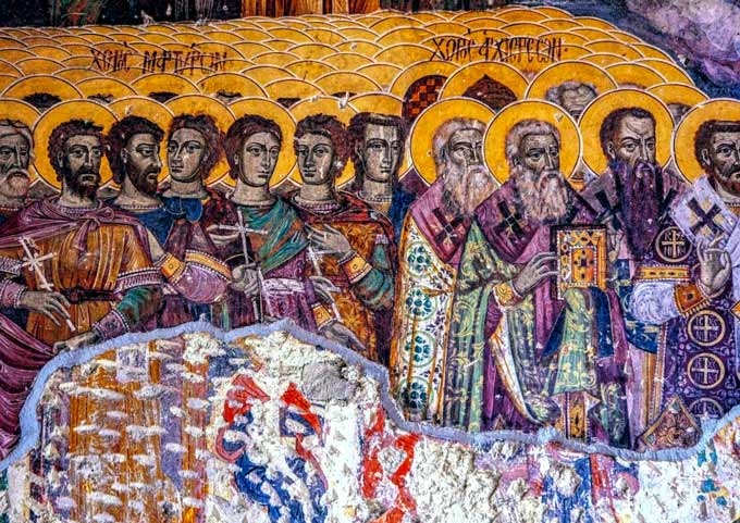 - Bu freskte hikaye coşkunluğu görülebiliyor. Hristiyanlık adına şehit olmuş kişiler, tahtta oturan Hz. İsa ve Meryem sahnelendirilmiştir. Sahnedeki tüm karakterlerin kıyafetleri dönemi yansıtıyor.