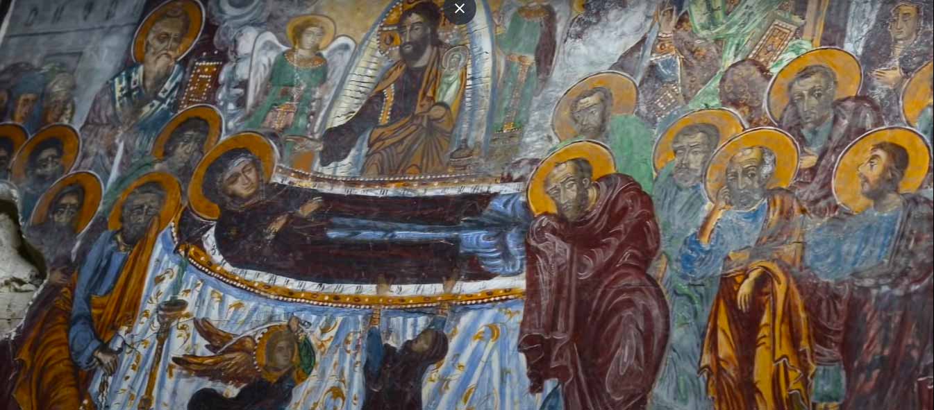 - Meryem’in ölümü ve göğe yükselişini anlatan bir fresktir. Bir yatakta uzanan Hz. Meryem’in etrafına havariler toplanmıştır.