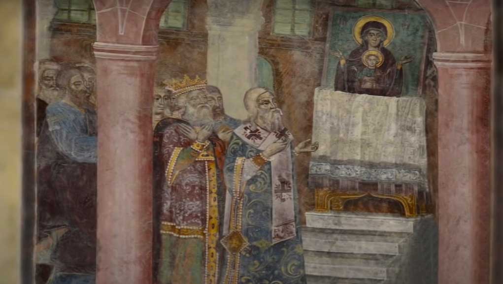 Hz. İsa ve Meryem İkonası Önündeki Kral ve Piskoposlar
