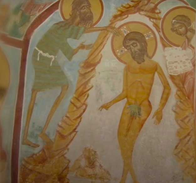 - Çıplak olarak resmedilen Hz. İsa bu freskte vaftiz edilirken görülüyor. Vaftiz eden kişi ise Vaftizci Yahya’dır. Bu freskte kullanılan teknikler kısıtlı görüldüğü için daha erken bir dönemin eseri olabileceği düşünülüyor.